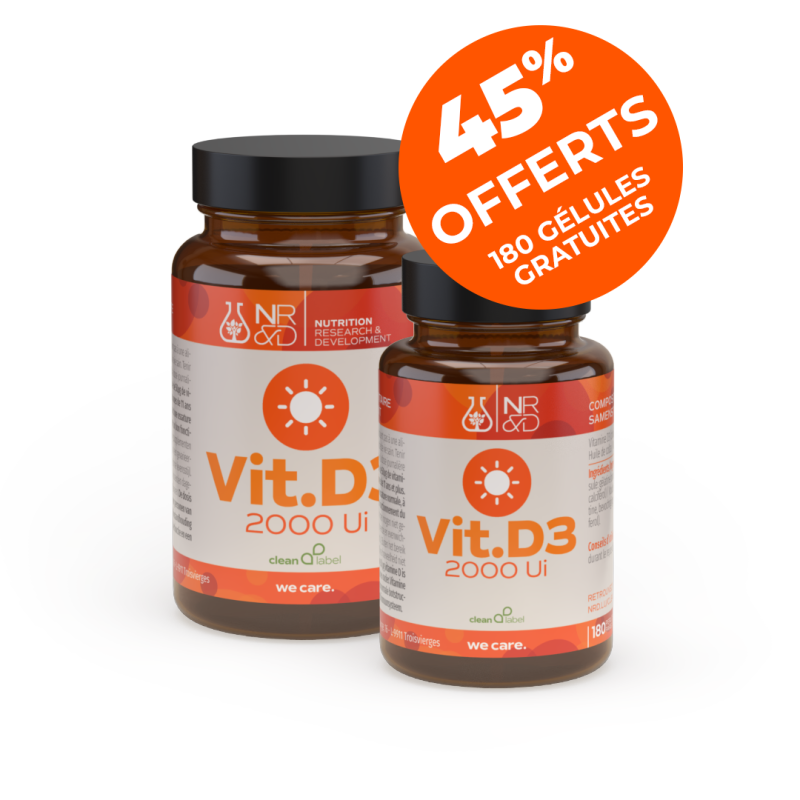 Recevez 180 perles offertes (45% de produits offerts) OFFERT = 22,07€ ! La solution indispensable pour faire le plein de vitamine D3 (2000 UI) sous forme de perles !